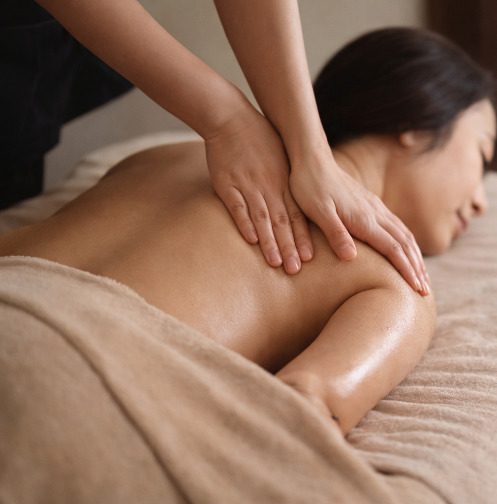 Calms your nervous system through rhythmic touch and warm oils, reducing cortisol levels and promoting profound relaxation that lasts for days